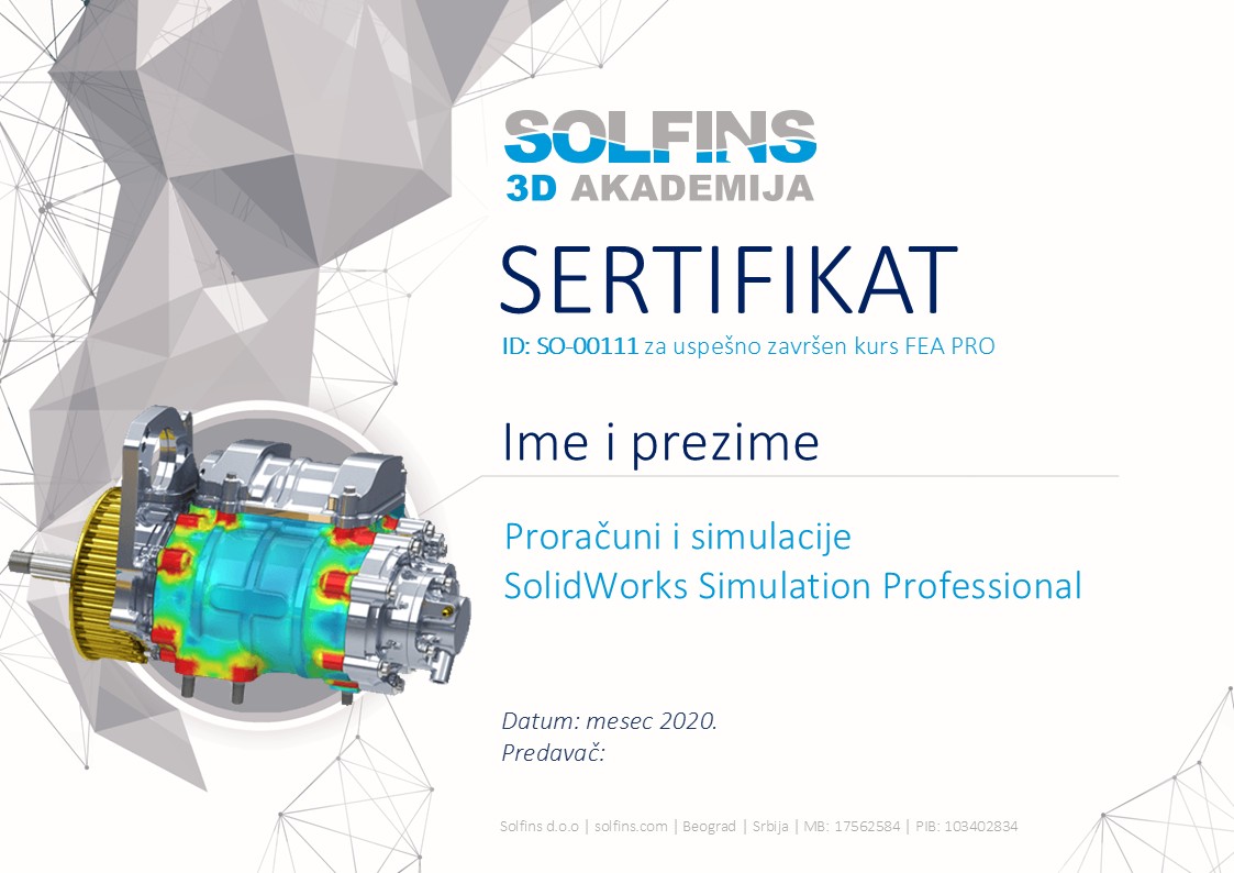 Obuka za napredne SolidWorks mašinske simulacije (SIMPRO)