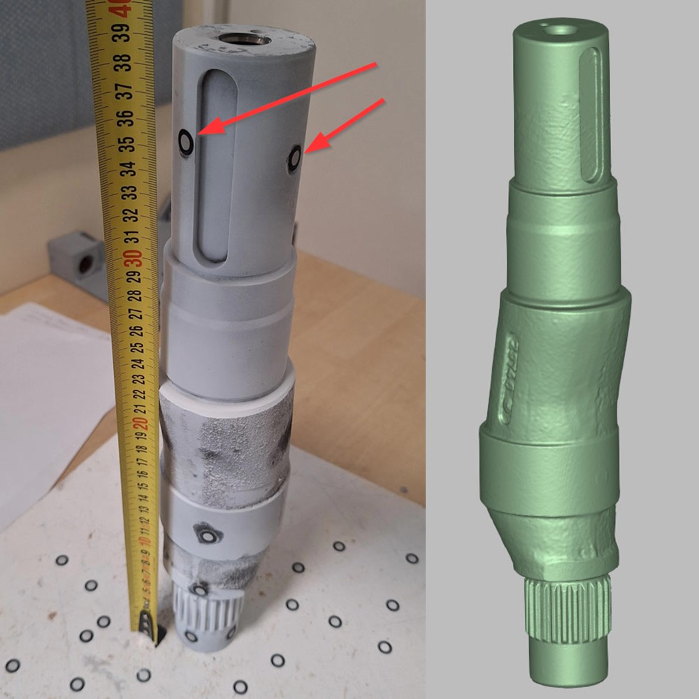 Navedeni problem bilo je neophodno rešiti nezahvalnim kombinovanjem mat spreja i targeta u gornjem delu vratila, kako bi skener tokom skeniranja svih zona vratila 2 imao vidljive targete u oblasti skeniranje. Ovakav pristup, koji iz već navedenih razloga treba izbegavati, u ovom slučaju bio je neophodan i doveo je do rezultata uspešnog skeniranja.