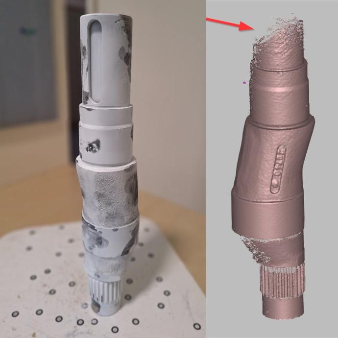 Prvobitni pokušaj skeniranja Vratila 1 bez upotrebe mat spreja, nije dao najbolje rezultate. Problematična je bila gornja zona koje se ističe kao sjajna površina, kao i zona sa spoljašnjim ozubljenjem. Problem je prevaziđen upotrebom mat spreja. Međutim, važno je podsetiti na činjenicu da je za skeniranje Artec Point skenerom neophodna primena reflektujućih targeta za precizno skeniranje i poravnjanje podataka.