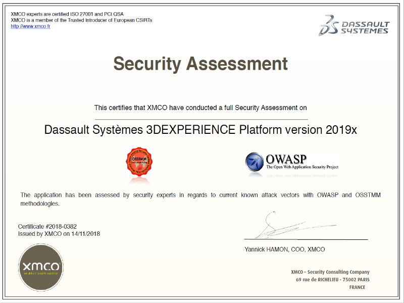 Pored osnovnih aktivnosti održavanja nivoa bezbednosti (system patching, services review), Dassault Systems rutinski sprovodi simulacije napada gde se proverava integritet sistema, kao i reakcije operativnih timova.
