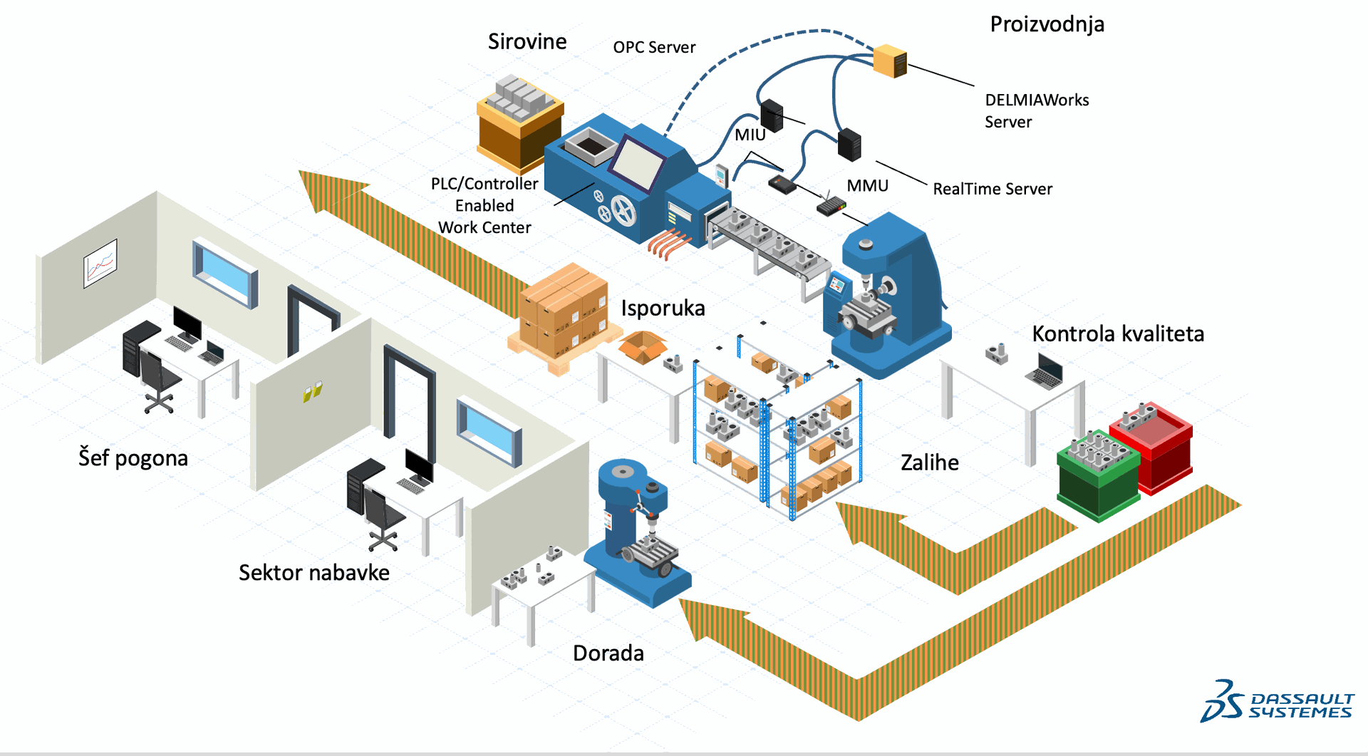 Iz ugla implementacije, production control and reporting u DELMIAWorks‑u je tačka gde se spajaju plan (Scheduling), RealTime signali, ShopData transakcije i inventar – i upravo zato je to jedna od ključnih tema na svakom Solfins projektu. Ako su BOM, rute i plan tačni, ali nema disciplinovane kontrole i izveštavanja u pogonu, sistem neće znati šta je zaista proizvedeno, gde se nalazi proizvod i koliki su realni kapaciteti i gubici; obrnuto, dobro postavljen ShopData/RealTime/production reporting pretvara DELMIAWorks u jedno mesto istine za celu fabriku. U projektima je zato ključno zajedno sa korisnikom definisati standardne scenarije: kako se prijavljuju serije, kada se radi Floor Disposition, ko unosi škart i zastoje, kako se koriste etikete i serijski brojevi i ko je odgovoran da se proizvodni izveštaji po smeni zaista zatvaraju u sistemu.