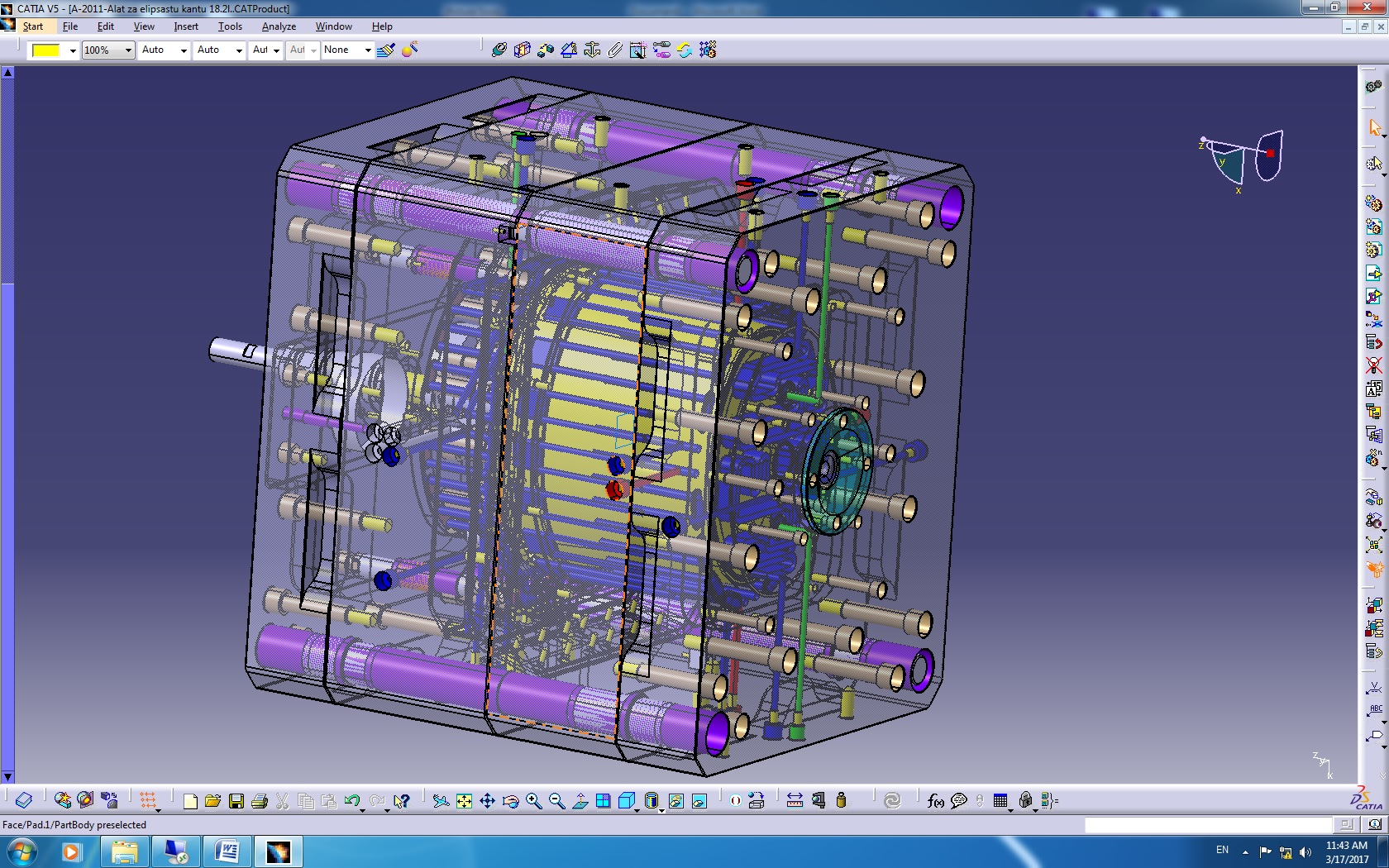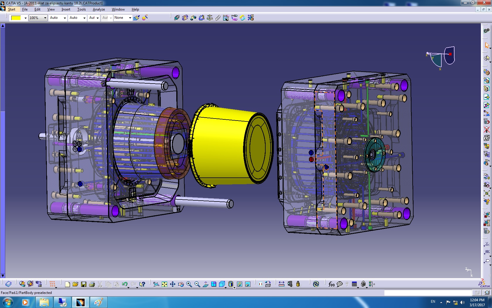 Zbog kompleksnosti na relaciji proizvod-alat odabrana su Dassault Systemes softverska rešenja - Catia V5.