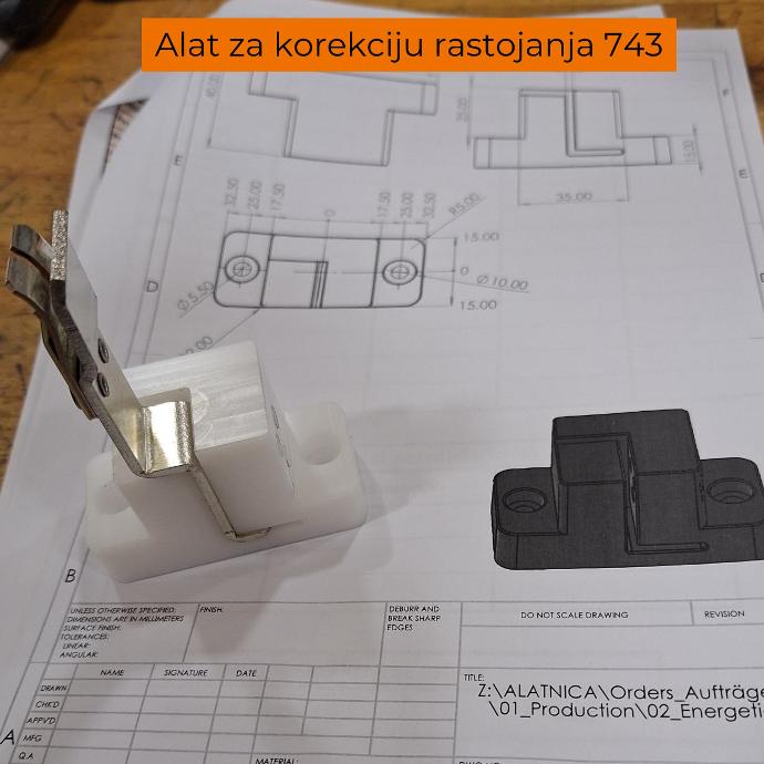 Alat za korekciju rastojanja 743 predstavlja rešenje razvijeno uz pomoć SolidWorks-a i SolidCAM-a koje omogućava precizno određivanje rastojanja u procesu proizvodnje čime se obezbeđuju visok nivo doslednosti i uniformnost kvaliteta.