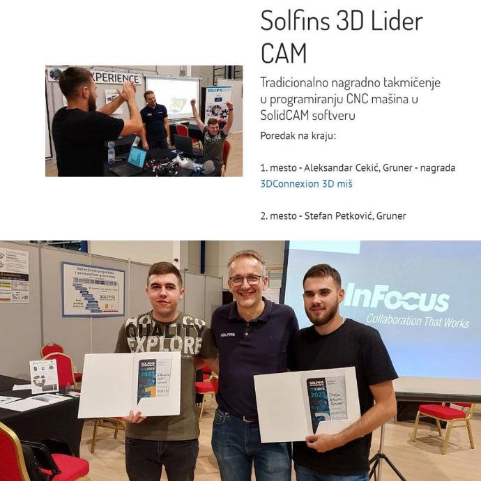 Foto: Gruner Serbian zaposleni osvojili su 1. i 2. mesto na CAM turniru Solfins 3D lider 2023. godine u Kragujevcu, kao i 1. mesto 2024. godine u Beogradu