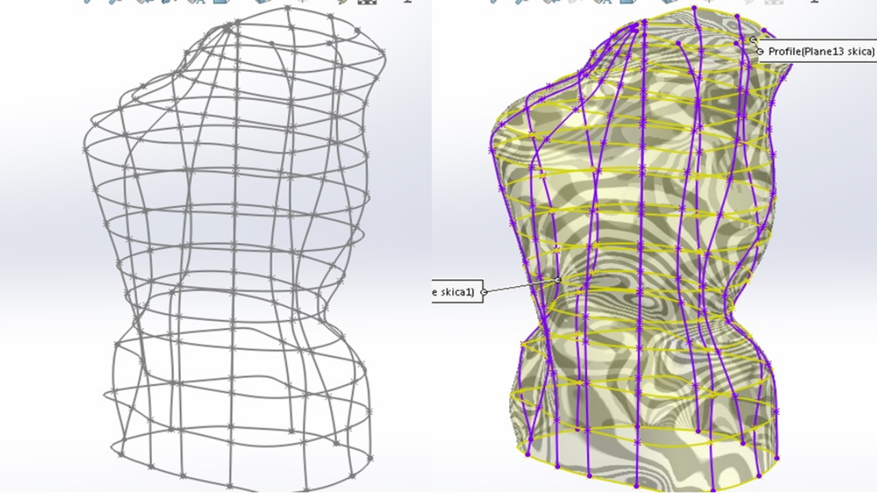 Projektovanje parametarskog modela koji brzo generiše željeni model midera na osnovu merenja torza pacijenta u zadatim tačkama. Ujedno se dobija i model torza za obradu na CNC mašini, za konačnu izradu midera.