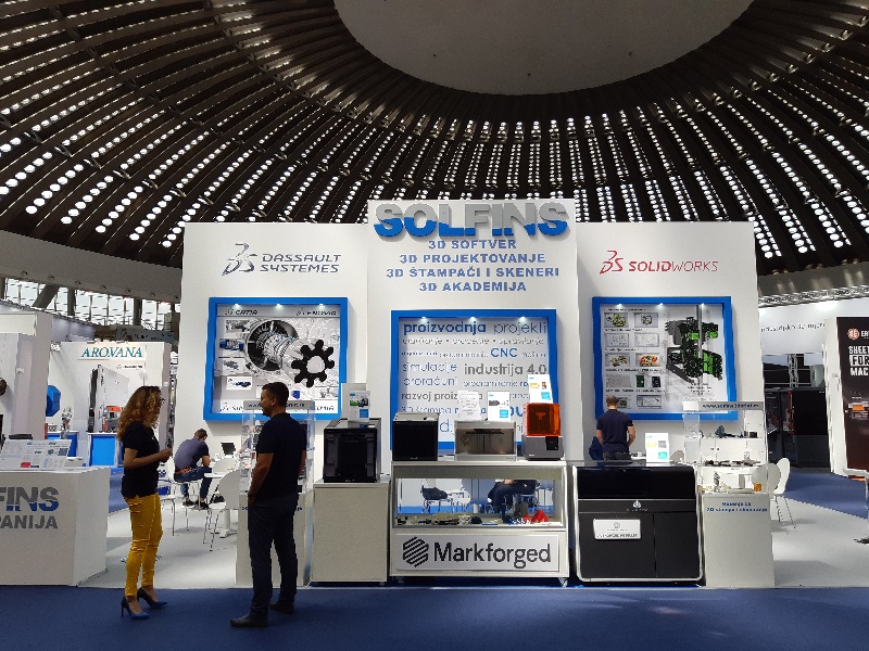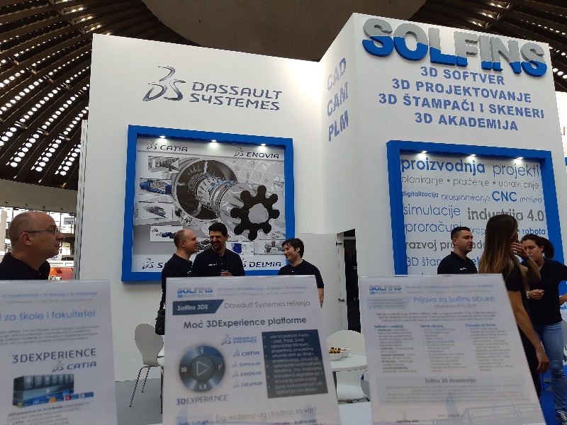 Solfins booth and 3D technology seminar at the Technical Fair in Belgrade, in 2018.