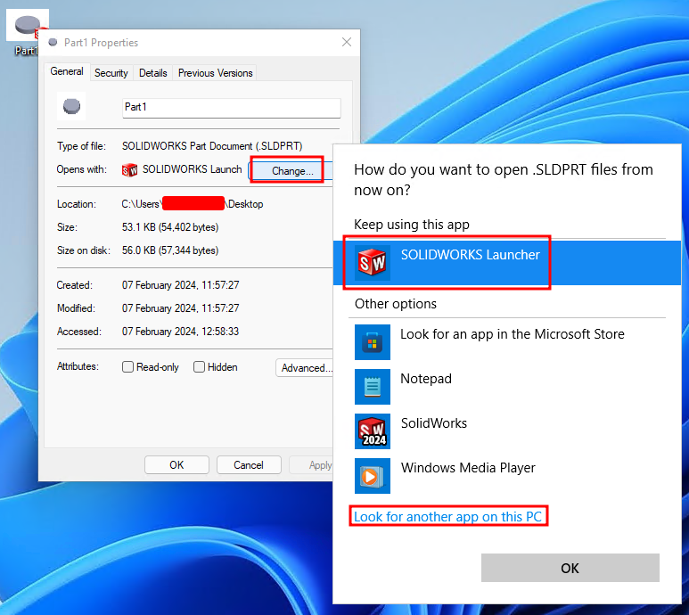 Ukoliko je štikliran File Utilities u Installation Manager-u (i instaliran, ako nije bio štikliran), potrebno je proveriti pomoću koje aplikacije se pokreću SolidWorks fajlovi. Potrebno je da ta aplikacija bude SolidWorks Launcher. Ukoliko nije ta aplikacija, preko Change komande izabrati SolidWorks Launcher.