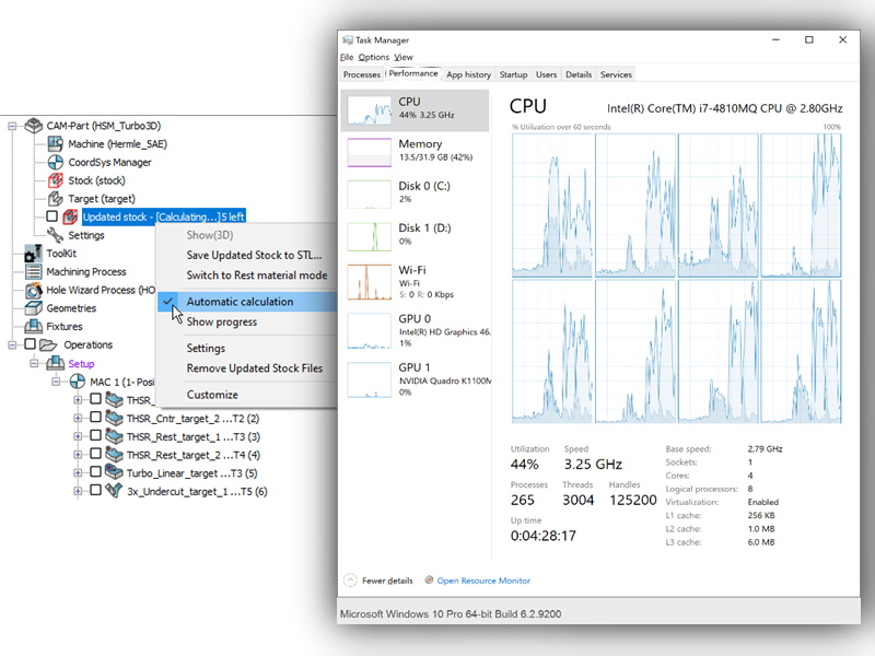 Napomena: Ova izmena načina rada softvera ne utiče na kalkulacije koje se koriste za putanje alata ili simulacije. U tim slučajevima, SolidCAM i dalje koristi 100% CPU jezgara za maksimalne performanse.
