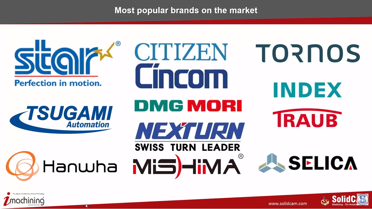 Citizen, Cincom, Tsugami, Nomura, Tornos, Quicktech, Hanwha, Star, Index Traub, Selica, Mishima, Nexturn, DMG Mori itd.
