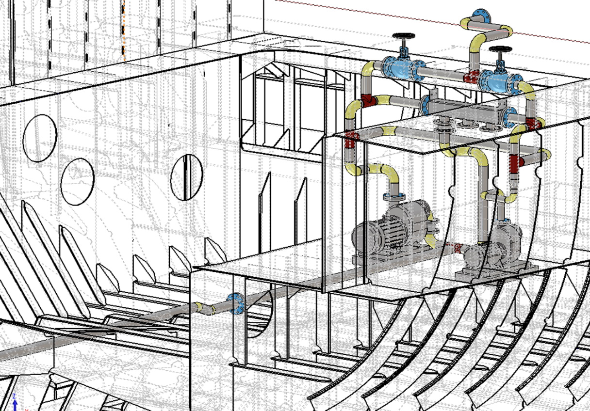 Ovde je moguće u ranim fazama projekta rezervisati prostor za brodsku opremu, cevovode, tankove...
