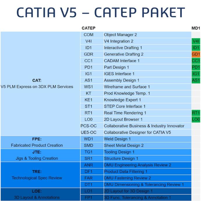 CATIA V5 Mechanical Engineer Excellence (CATMEP) конфигурацијата ги содржи следниве модули по многу конкурентна цена: