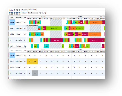 - користи напредни алгоритми за земање во предвид и достапноста на материјали и ограничувањата на капацитетот истовремено.