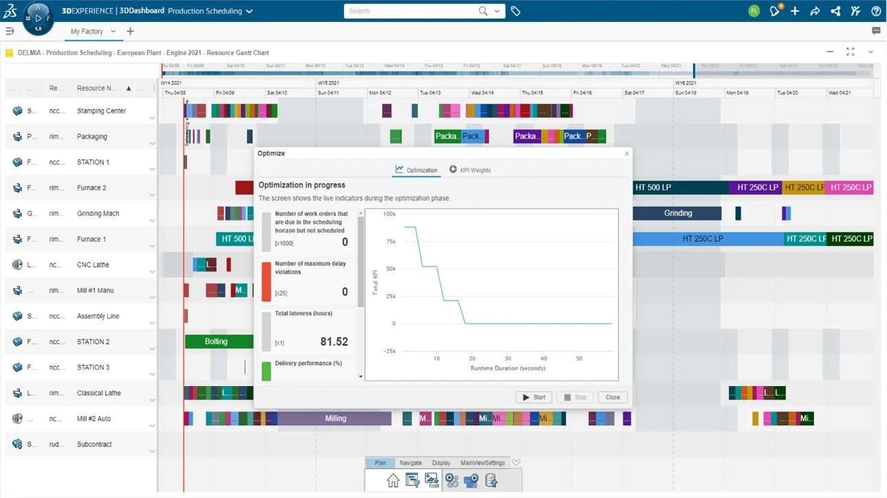 Интегрирајте го производството во ERP со неверојатна ефикасност и флексибилност што ја нуди DELMIA Ortems софтверското решение за планирање и терминирање на производството: