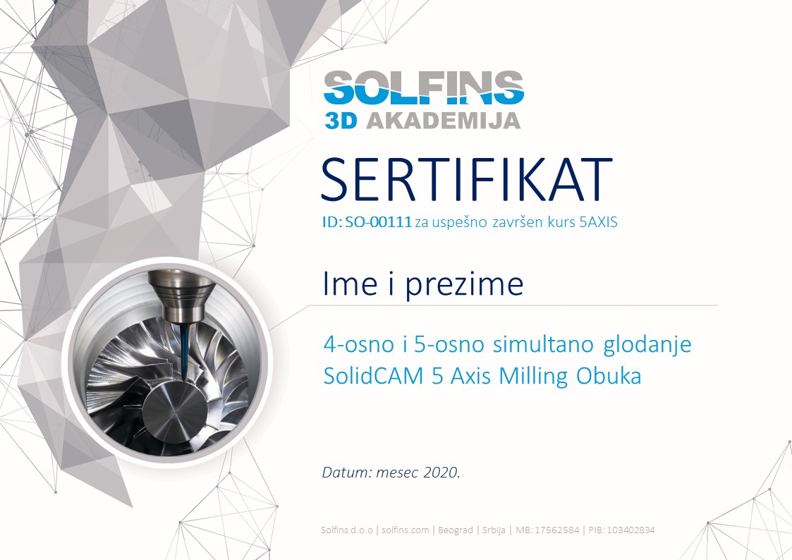 Četvoroosno i petoosno simultano glodanje – SolidCAM 5 axiss Milling obuka (5AXIS) (online)