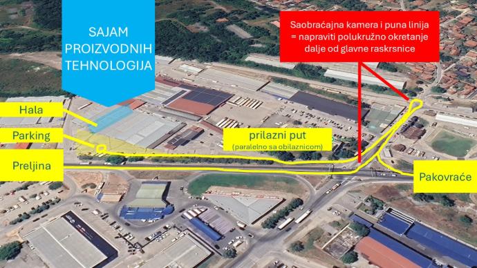 Hala u kojoj se održava Sajam nalazi se odmah uz obilaznicu, lako dostupna iz oba pravca - od Preljine ili od Pakovraća.